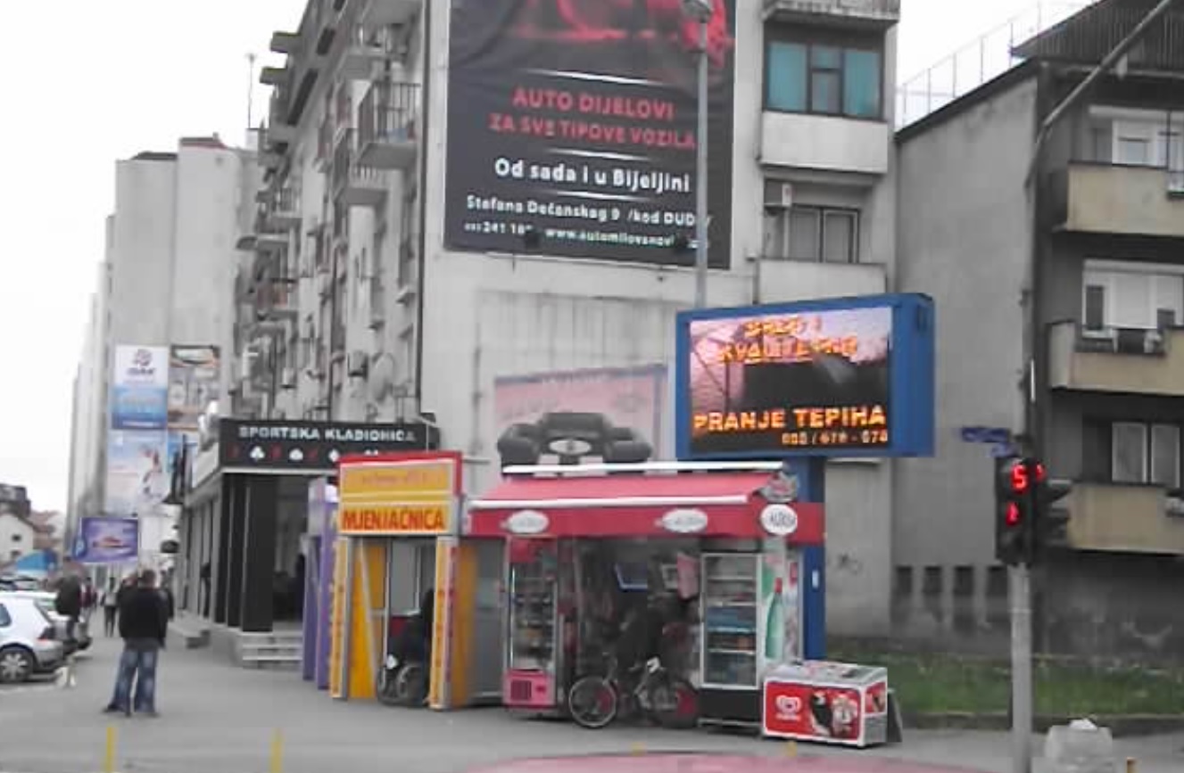 Led displej u vrhunskoj rezoluciji, punoj paleti boje i najsavremenijoj SMD tehnologiji u Prnjavoru. Ovde je velika frekvencija vozila i pješaka.